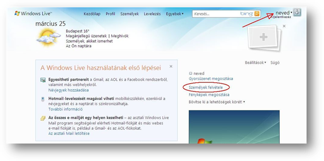 bejelentkezési neved, valamivel alatta pedig egy „személyek